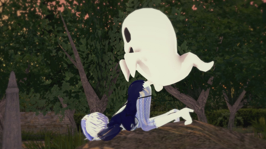 16:9 anime boo_(mario) cemetery crossover female_penetrated fishnet_stockings fishnets funny ghost ghost_girl halloween hentai outside partially_clothed sex spooky stockings super_mario_bros. torn_clothes transparent_body white_hair